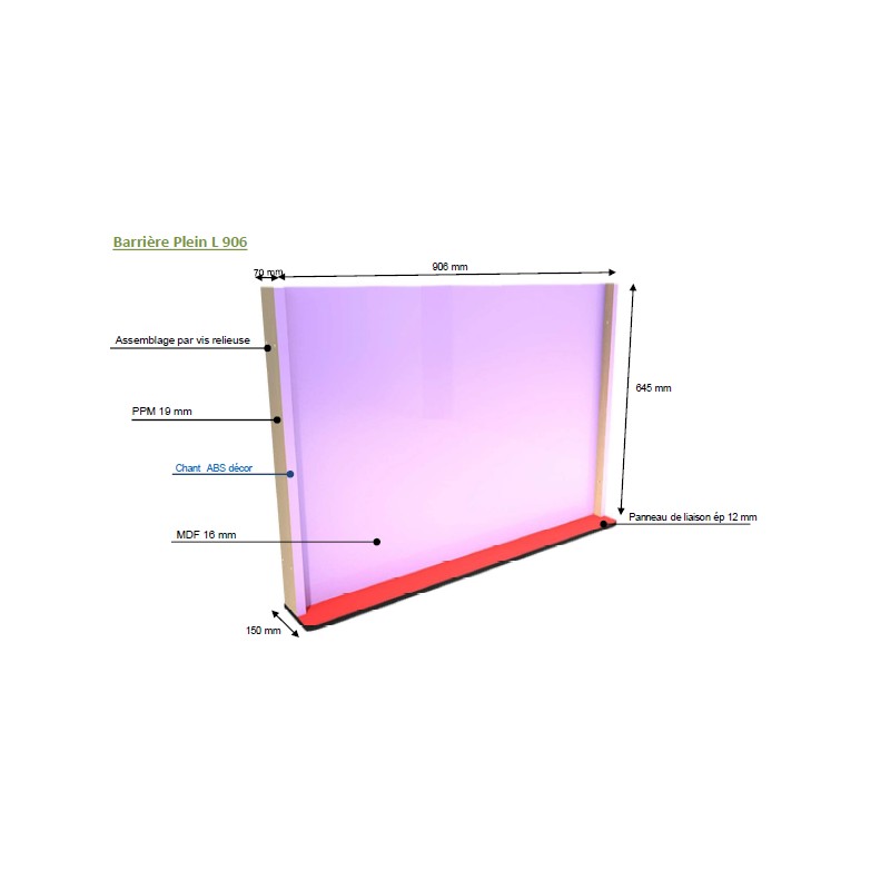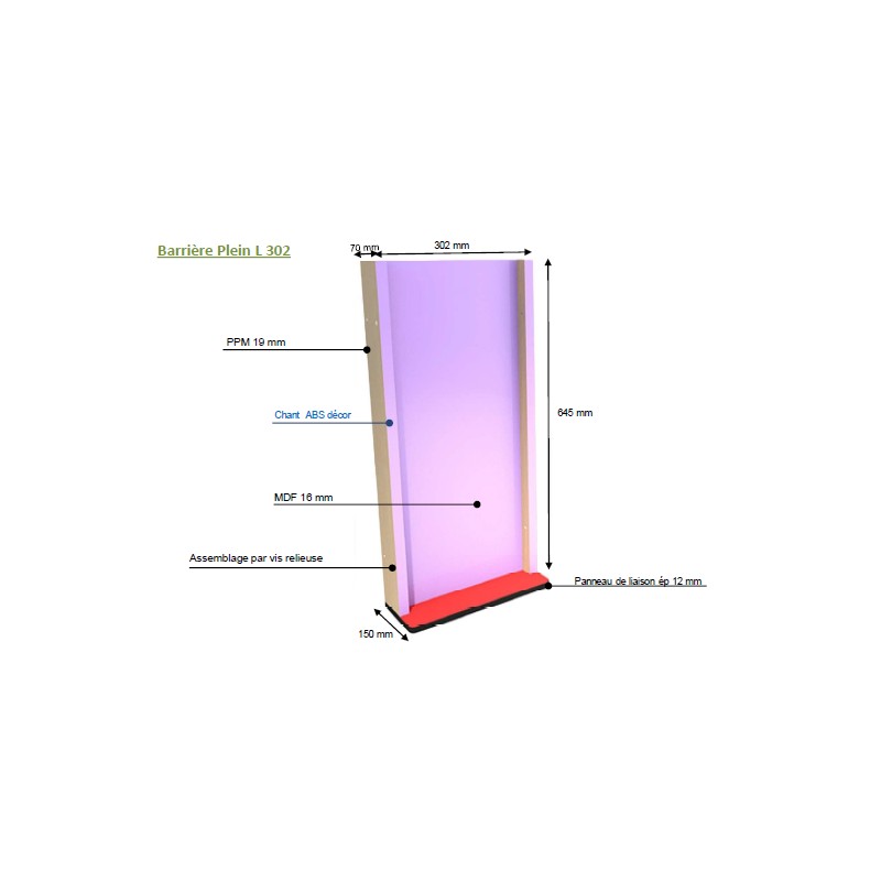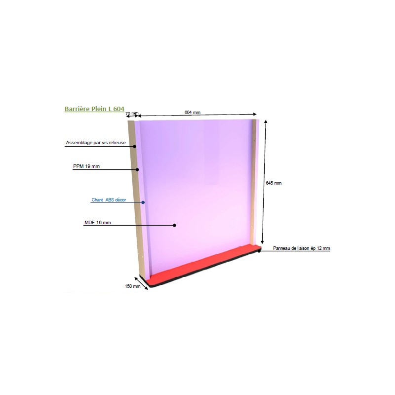 Ces barrières sont dotées de montants en PPM d’une épaisseur de 19 mm (hêtre ou blanc) garantissant une excellente robustesse. Le panneau est fait en MDF mélaminé (couleur au choix) avec une épaisseur de 4 mm. Le panneau de liaison quant à lui est en stratifié compact de 12 mm d’épaisseur.