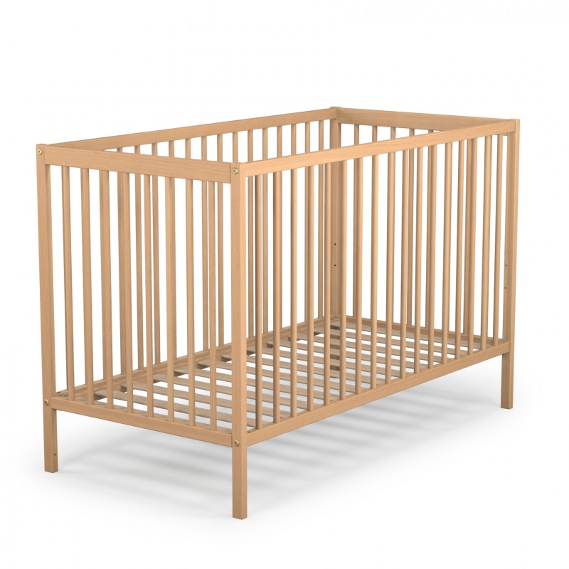Doté d’une structure en bois massif, ce lit assure une grande robustesse. Le sommier à 3 hauteurs et les lattes sont en hêtre. Il est comporte des côtés fixes à barreaux assurant la sécurité de l’enfant. Ce lit est adapté aux matelas de 60x120 cm, hauteur maxi 12cm (non fourni).