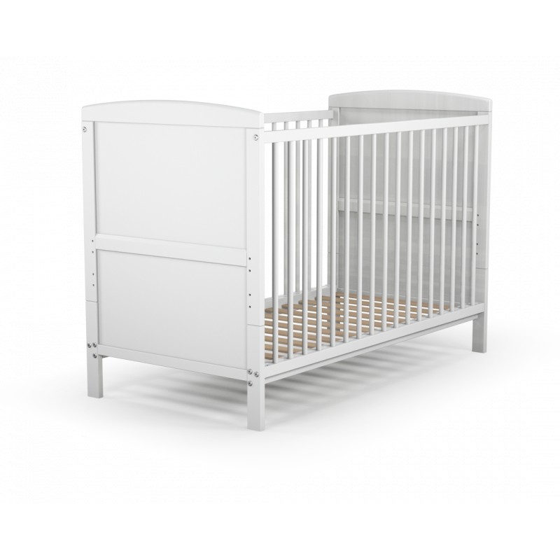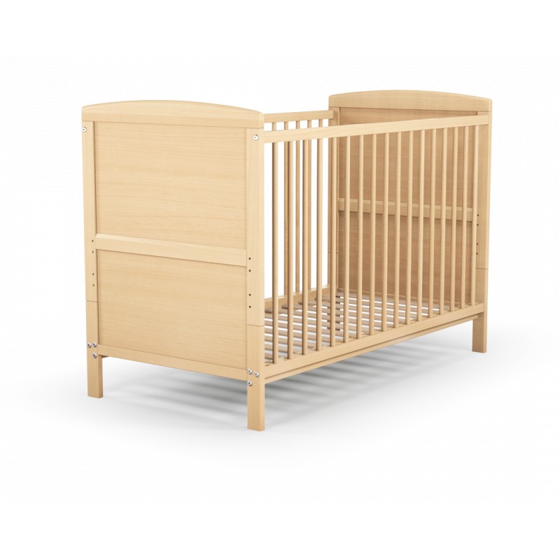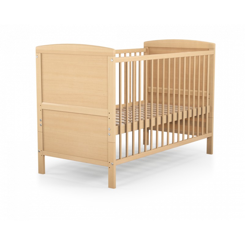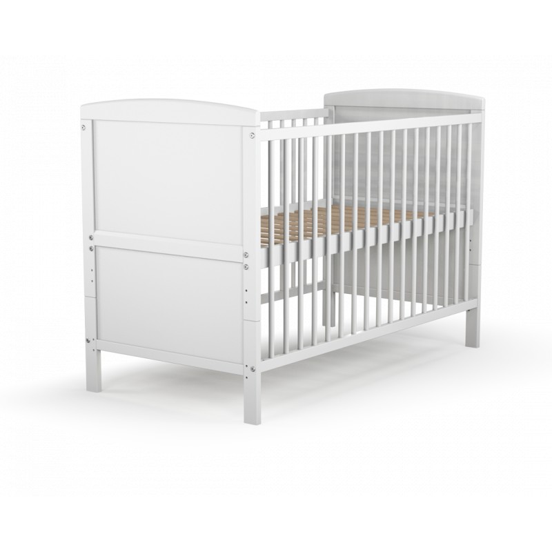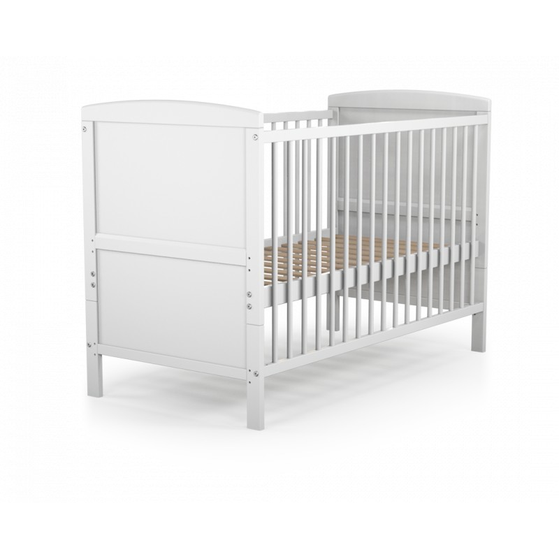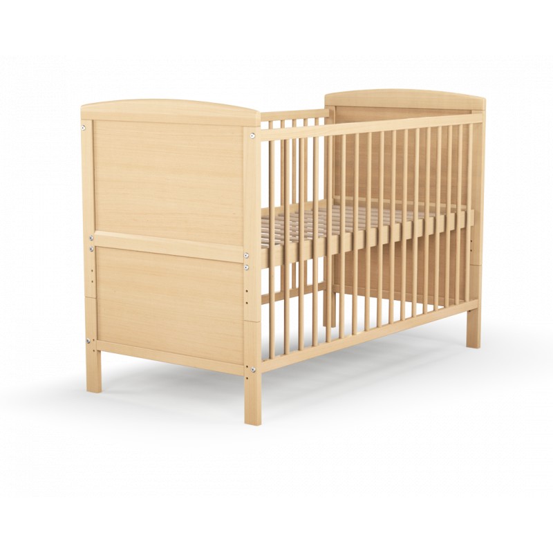 Le lit évolutif comporte un sommier à lattes réglable sur 2 hauteurs ainsi que des barreaux permettant de coucher bébé confortablement en toute sécurité.