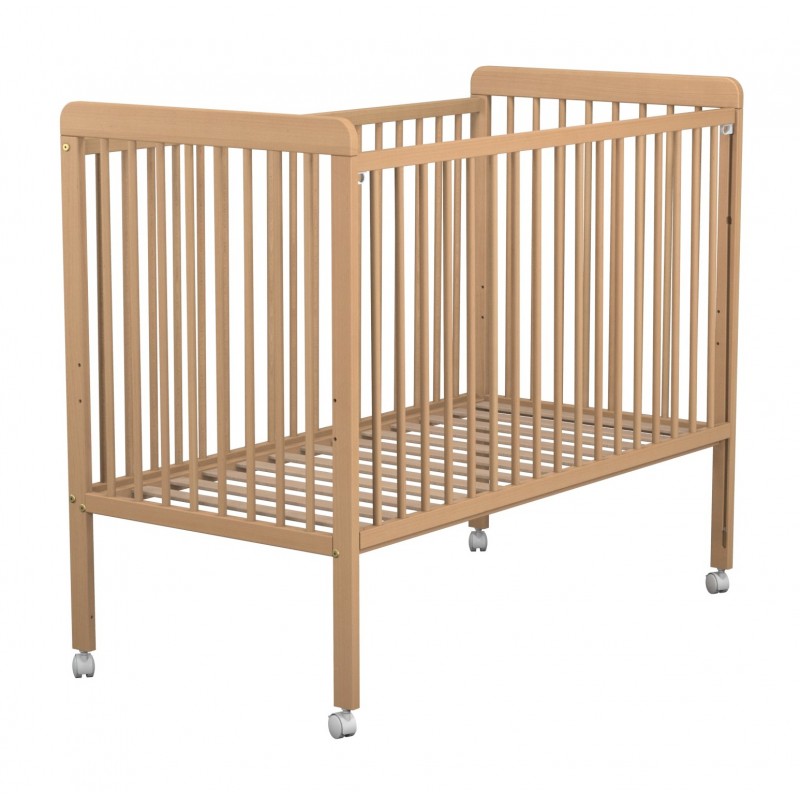 Ce lit avec une structure rehaussée comporte un côté coulissant permettant de coucher bébé sans difficulté. Son sommier à lattes pouvant se régler sur trois hauteurs peut accueillir un matelas de 60x120 cm avec une hauteur maximale de 12 cm. Facile à déplacer, ce lit comporte 4 roulettes à freins. Sa structure en bois massif assure une grande robustesse.