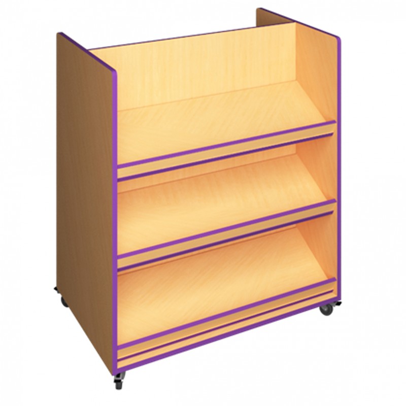 Comme son nom l’indique, ce présentoir réversible comporte deux côtés : un côté avec des étagères inclinées dotées de rebord antichute pour présenter les livres et un autre côté pour les rangements.