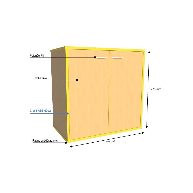 De taille idéale pour ranger les vêtements ou les jouets de l’enfant, ce meuble à porte comporte deux étagères réglables en PPM d’une épaisseur de 19 mm (blanc ou hêtre). L’ouverture des portes se fait par des poignées en fil chromé mat. Quant aux charnières, celles-ci sont dissimulées. Ce meuble est doté de patins antidérapants.