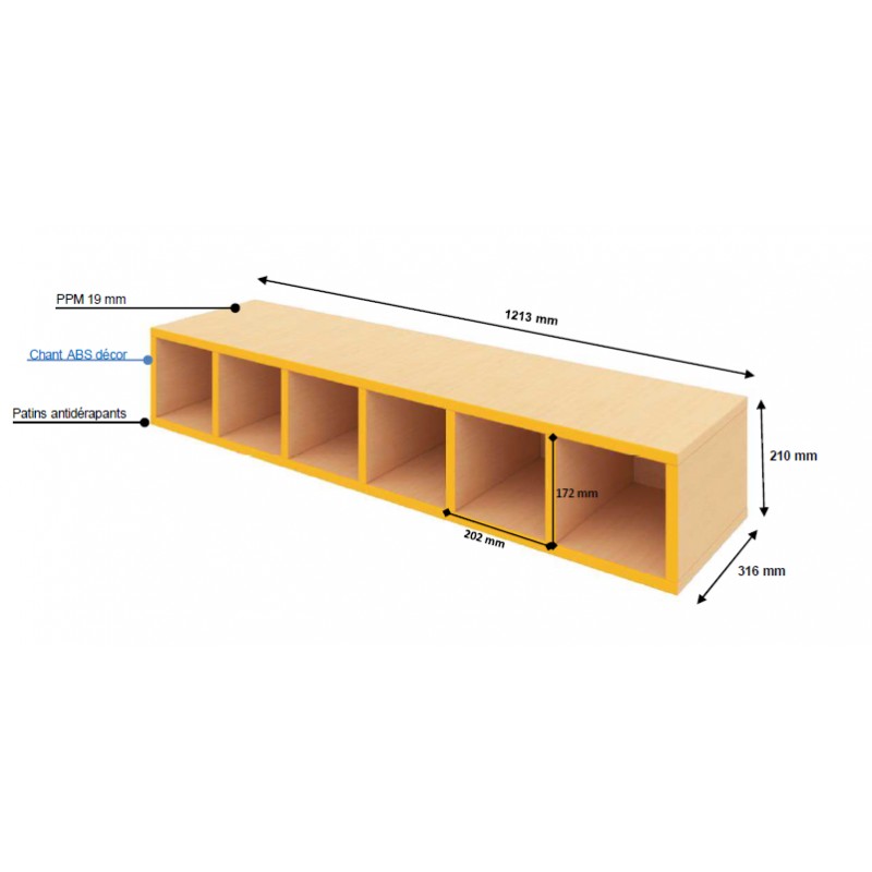 Pour votre crèche, procurez-vous ce banc avec 6 casiers à chaussures. Il est disponible en 12 coloris au choix.