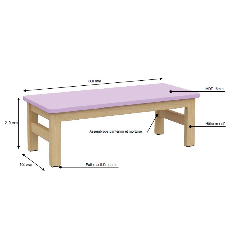 Doté d’une structure en hêtre massif, ce banc assure une grande robustesse. L’assise est MDF mélaminé avec une épaisseur de 16 mm. L’assemblage est fait par tenon et mortaise.