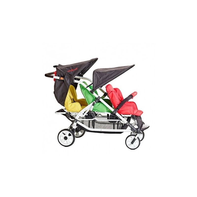 Cette poussette Lidoo permet de transporter jusqu’à 3 enfants de 6 mois à 2 ans.