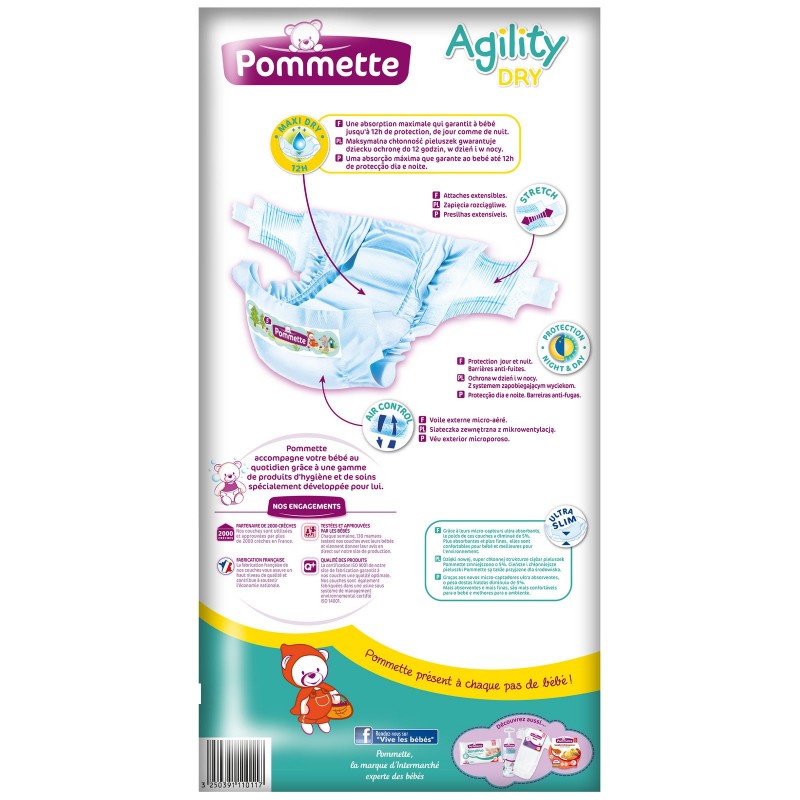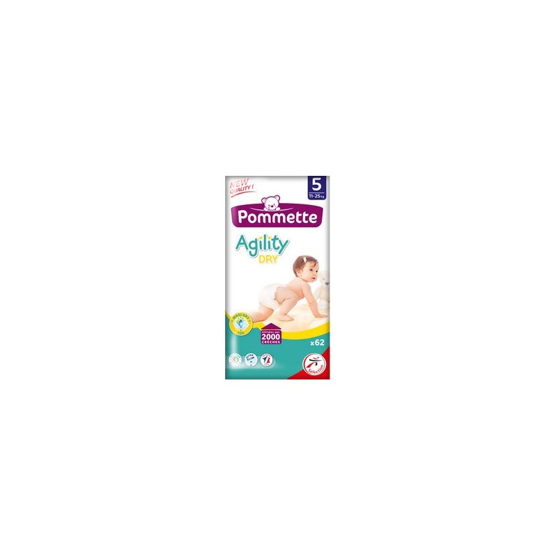 Pour une hygiène parfaite et pour le bien-être des bébés de 11 à 25 kg, procurez-vous ces couches Pommette de la gamme Agility Dry.