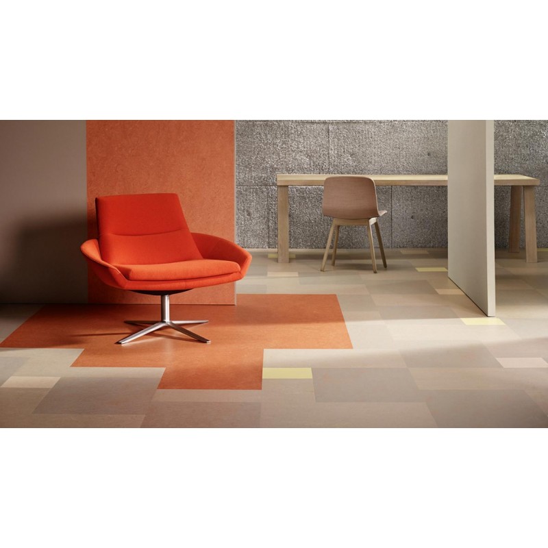 Naturellement antibactérien, ce revêtement de sol est composé d’huile de lin, de résines naturelles, de farine de bois, de pigments et de charges minérales.