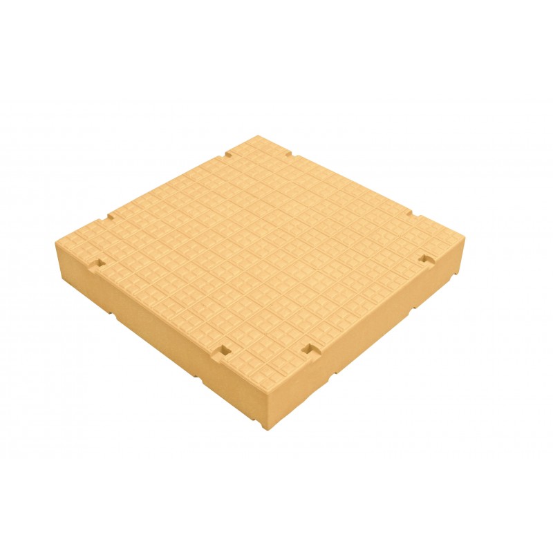 Conforme à la norme NF EN1177, HIC < 1000 pour une hauteur de 2 m de haut. Déformable à l’impact, les dalles offrent un confort à la marche grâce à la géométrie alvéolaire.